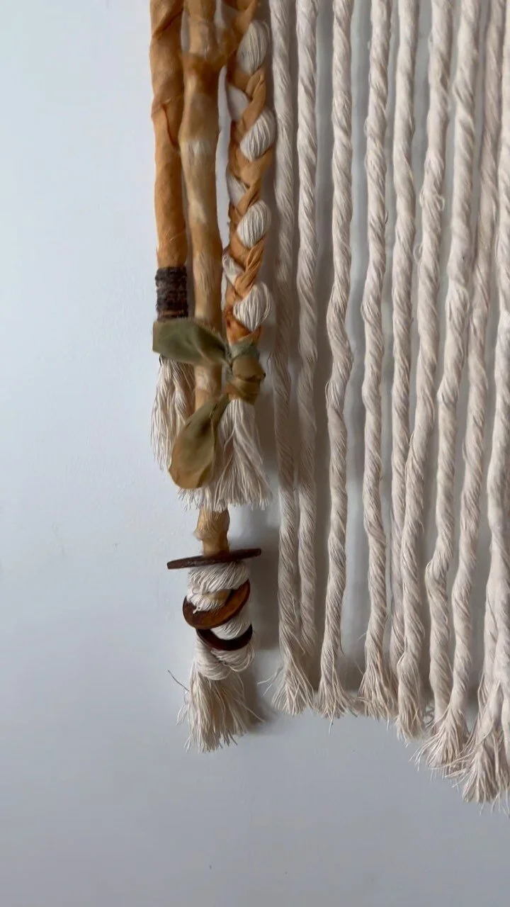 For me, creating is a very organic process. I usually start with a theme, or a colour inspiration, or a vibe, and then I let the ropes or yarn tell me what they want to be, how they want to play together. I love experimenting and playing with contrasting textures and colours. I am always pushing myself to try something new and expand my palettes and materials that I work with. I love making bespoke, one of a kind pieces that are unique and personal.
